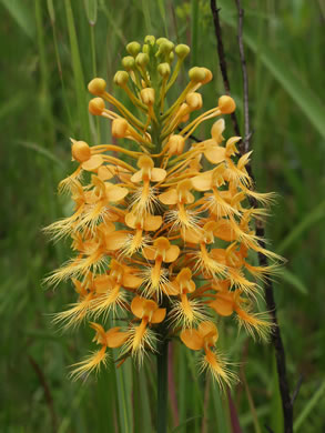 In the fall, the orange, white, and yellow torches of the fringed orchids hold court along those same roadside banks, sometimes in the hundreds.