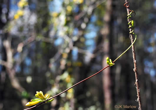 Habitat: Swamp forests, bottomlands, forests, woodlands. Though primarily a species of swamp and bottomland forests, Bignonia capreolata often occurs as well in mesic or even dry forests, where it generally remains stunted (most individuals with only a few leaves) and does not flower or fruit