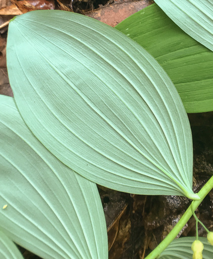 Leaves sessile, elliptical with pointed tips, 1.5-3" long, pale beneath, per Wildflowers of the Atlantic Southeast (Cotterman, Waitt, & Weakley, 2019).