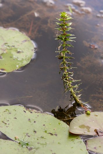 Its reddish submersed stems can be confused with M. heterophyllum when sterile, per Weakley's Flora.