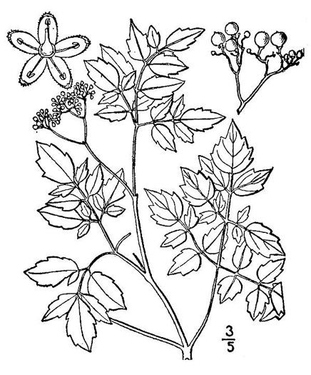 Leaves bipinnately or tripinnately compound. Leaflets coarsely serrate, per Vascular Flora of the Carolinas (Radford, Ahles, & Bell, 1968).