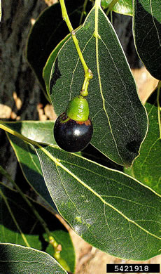 Fruit a shiny black drupe, oval, per Native Trees of the Southeast, An Identification Guide (Kirkman, Brown, & Leopold, 2007).
