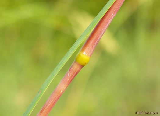 Nodes retrorsely pubescent. Internodes glabrous or strigilose. Sheaths glabrous or sparsely strigose, per Vascular Flora of the Carolinas (Radford, Ahles, & Bell, 1968).