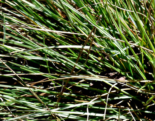 Leaf blades filiform, 0.5mm wide, involute, margins ciliate-scabrid, surface glabrous, per Flora of North America.