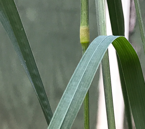 Collar (junction of leaf & sheath) glabrous or nearly so, leaves 3-7mm wide, per Weakley's Flora.