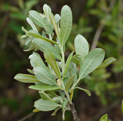 Leaves elliptic to oblanceolate, simple; petioles nearly as long as blades, per Flora of North America.