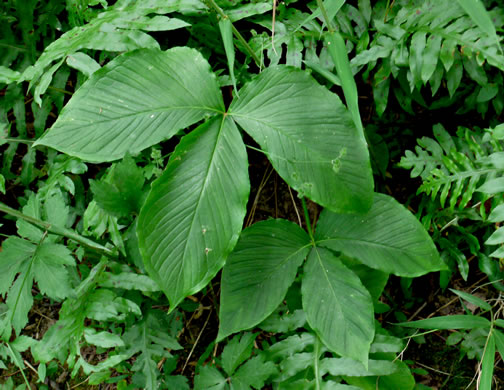 Stem below ground (rarely emerging). Petioles long and 3-angled, per Forest Plants of the Southeast and Their Wildlife Uses (Miller & Miller, 2005).