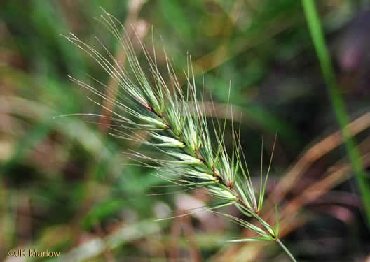 Spikelets paired: one silky and sessile, one stalked and smooth, both w awns, per Wildflowers of Tennessee (Carman, 2005).