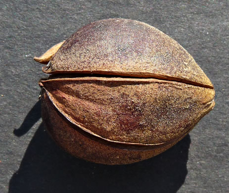 The nut is ellipsoid, resembling a nutmeg. Husk sutures prominently winged, per Native Trees of the Southeast, An Identification Guide (Kirkman, Brown, & Leopold, 2007).