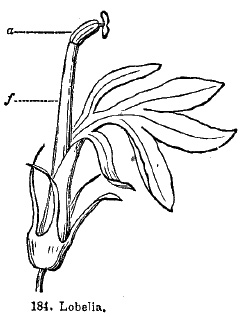 In the Cardinal-flower (Fig. 184) and other Lobelias, both the anthers (a) and the filaments (f) are united into a tube. So also in the Pumpkin and Squash.