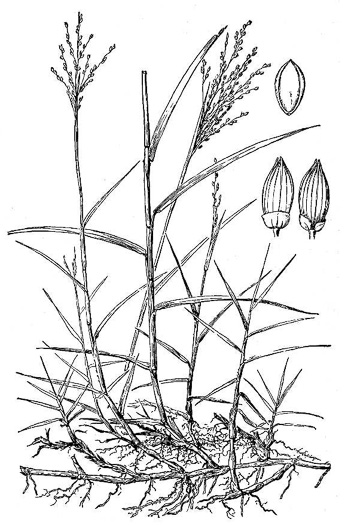 Panicle open, 7-12cm long, its somewhat distant branches stiffly ascending, per Manual of the Grasses of the United States (Hitchcock & Chase, 1950).