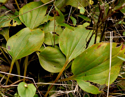 Leaves not forming large clonal patches; leaf blades ovate, longer than wide, per Weakley's Flora (2015).