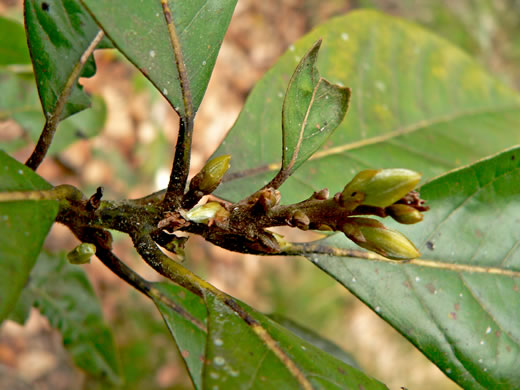 Leaf blade leathery, elliptical to oblong, tapering at both ends, 2-8" long, per Native Trees of the Southeast, An Identification Guide (Kirkman, Brown, & Leopold, 2007).