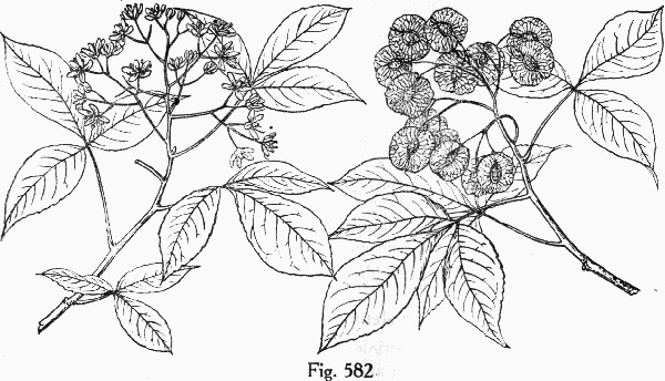 Sources disagree as to whether the leaves are pinnately compound or palmately compound...