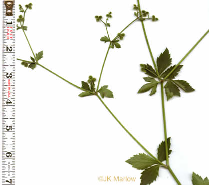 Polygamous umbellet with pedicellate mature fruits and staminate flowers, per A synopsis of the genus Sanicula (Apiaceae) in eastern Canada (Pryer & Phillippe, 1989).