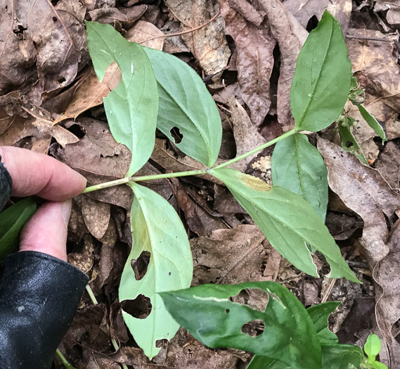 Stem leaves are mostly lanceolate, to 3.5" long, per Wildflowers of Tennessee (Carman, 2005).