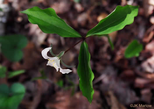 Leaves with small stalks, the blades broadest near the middle, per Trilliums of Georgia (Patrick, 2007).