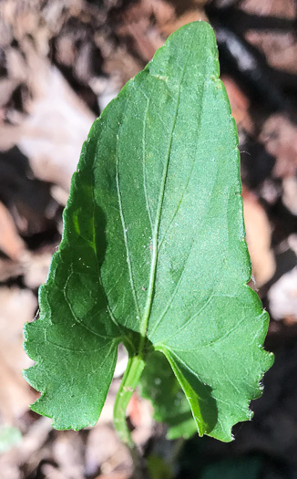 Leaves during chasmogamous flower undivided or w small basal teeth or lobes, per Violets (Violaceae) of the Great Plains and Eastern North America (Ballard).