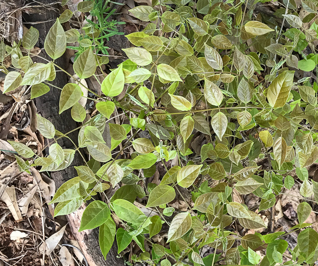 leaves of Peppervine, Trumpet-creeper and Wisteria