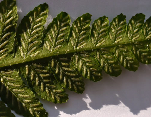 Silvery sori prominent, per Peterson Field Guide to Ferns of Northeastern and Central North America.