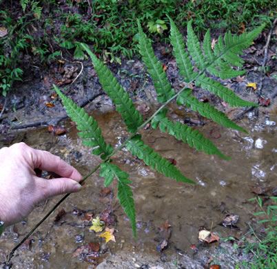 Pinnae with long acuminate apex. Deeply cut into blunt-ended segments, per Field Guide to the Ferns and Other Pteridophytes of Georgia (Snyder & Bruce, 1986).