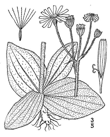 Leaves nearly all basal, with prominent subparallel veins, faces hirsute and stipitate-glandular, per Flora of North America.
