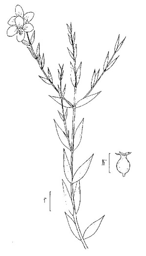 Leaves opposite, lance-shaped, bluish-green with 3 distinctive longitudinal veins, per Atlantic Coastal Plain Wildflowers (Nelson, 2006).