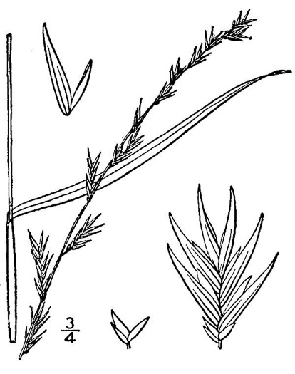Spikelets flat and nearly sessile, with 1-4 fertile and 1 sterile flower, per Vascular Flora of the Carolinas (Radford, Ahles, & Bell, 1968).