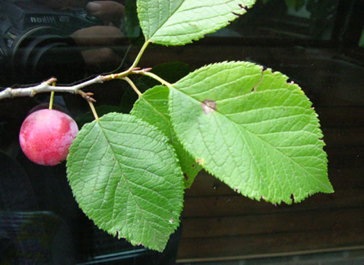 Fruits purple with a whitish bloom, somewhat larger than American Plum, per Native Trees of the Southeast, An Identification Guide (Kirkman, Brown, & Leopold, 2007).