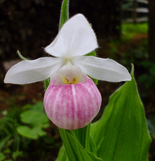 Pouch-like lip of flower pink and white (rarely all white), per Weakley's Flora (2020).