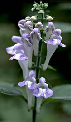 Flowers 1" or more, with an erect white tube & pale blue hood-like upper lip, per Field Guide to the Rare Plants of Georgia (Chafin, 2007).