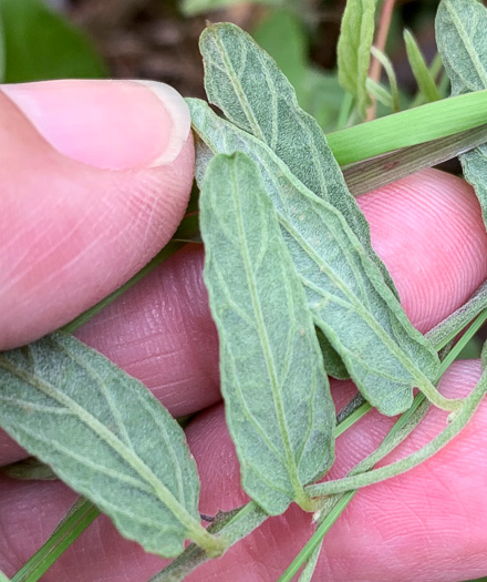 Leaves densely and conspicuously silvery-sericeous, per Weakley's Flora (2020).