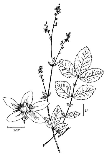 Principal leaflets 5-7, glabrous to remotely pubescent, coarsely serrate, per Vascular Flora of the Carolinas (Radford, Ahles, & Bell, 1968).
