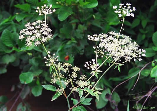 Tiny white flowers borne in compound umbels 2-5" wide, per Wildflowers of Tennessee, the Ohio Valley, and the Southern Appalachians (Horn, Cathcart, Hemmerly, & Duhl, 2005).