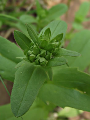 An erect, sometimes branched, stem up to 16" high, per Wildflowers of the Southern Mountains (Smith, 1998).