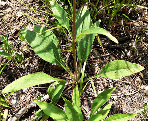 Leaves basally disposed and long-stalked, the almost entire blades 3-6" long, per Wildflowers of Tennessee (Carman, 2005).