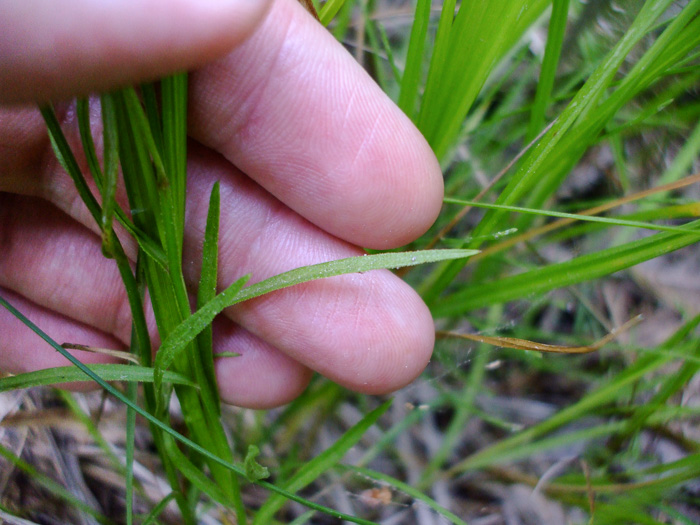 Stems weak and leaves narrow, both scabrous with small, stiff retrorse hairs, per www.missouriplants.com (Tenaglia).