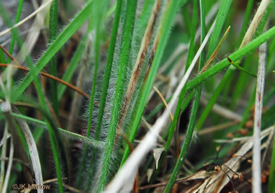 Leaves 5-20cm long, 2-4mm wide, lower surface & sheath w long white hairs, per Forest Plants of the Southeast and Their Wildlife Uses (Miller & Miller, 2005).
