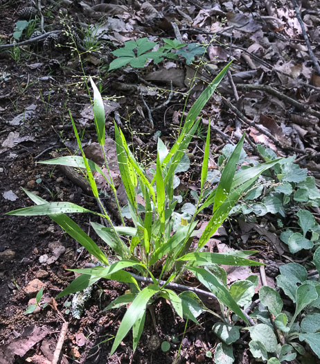 Early panicles 4-9cm long, later panicles partly hidden in leaf sheaths, per Forest Plants of the Southeast and Their Wildlife Uses (Miller & Miller, 2005).