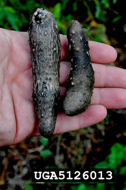 Aerial tubers to 4" (10cm) long and 1.2" (3cm) wide, per A Field Guide for the Identification of Invasive Plants in Southern Forests (Miller, Chambliss, & Lowenstein, 2010).