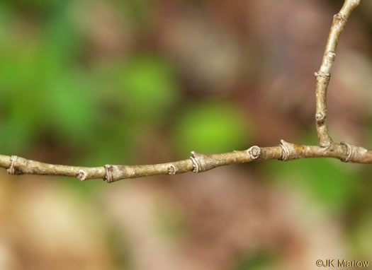 Twigs have a jointed appearance due to swollen nodes, per Woody Plants of the Southeastern US: A Winter Guide (Lance, 2004).