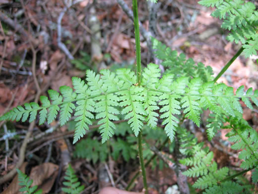 Rachis with glandular hairs, per Peterson Field Guide to Ferns of Northeastern and Central North America.