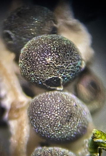 Surface of seed reticulate-pitted, the pits iridescent, coppery gold-green-blue, per Aquatic and Wetland Plants of Southeastern United States (Godfrey & Wooten, 1979 & 1981).