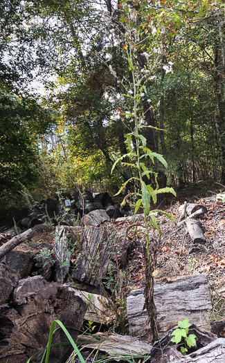 Habitat: In disturbed soil in nearly all habitats except the extremely xeric, present in most parts of the modern (beat-up) landscape at least as seedlings, liable to turn up at the smallest disturbance (such as small tree-fall tip-up mounds or campfires, even in large natural areas), most abundant in areas extensively disturbed or scarified by timber-harvest, bulldozing, or severe fire, per Weakley's Flora