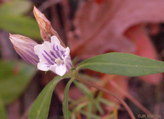 Corolla tubes slightly to widely open, whitish with light blue stripes, per Gentians of the Eastern US (Drake, 2011).