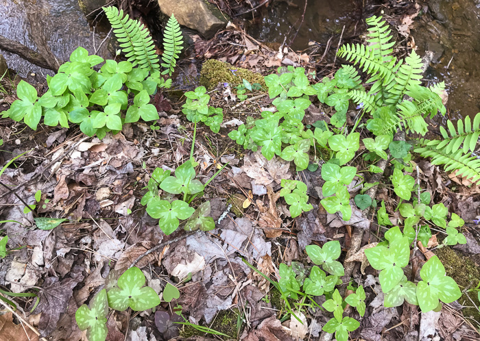 Three-lobed evergreen leaves w sharply pointed tips, hence the common name, per Wildflowers & Plant Communities of the Southern Appalachian Mountains and Piedmont (Spira, 2011).