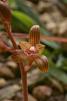 Resembles Corallorhiza but larger in all respects; scape to 30" tall or more, per Wildflowers of the Southern Mountains (Smith, 1998).