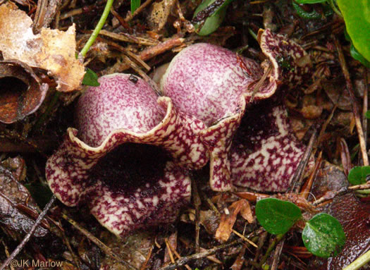 Northern populations have large prominently-flared flowers, per A Review of the Taxonomy & Biogeography of Hexastylis, Aristolochiaceae (Gaddy, 1987).