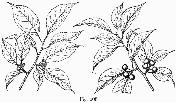 Fruit borne primarily in the axils of leaves on spur shoots, per Weakley's Flora.