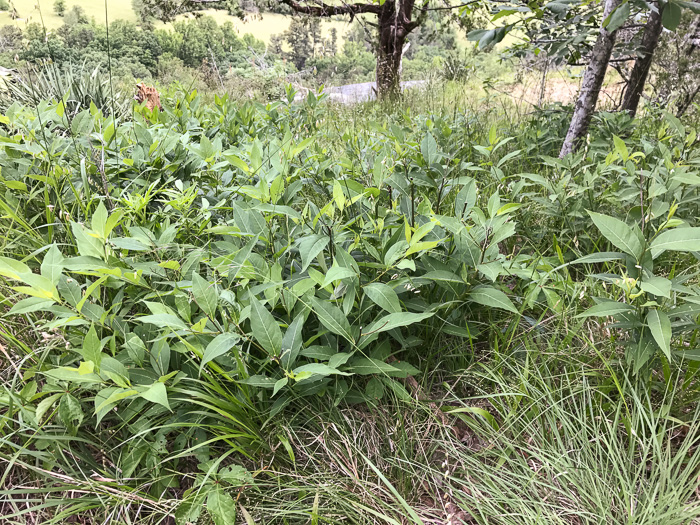 This tall smooth plant has alternate leaves, which is unusual in Apocynaceae, per Wildflowers of the Southern Mountains (Smith, 1998).